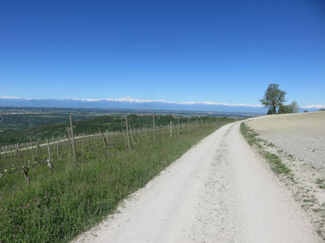 Descrizione: abbiamo così chiamato questo itinerario in quanto agli aspetti più tradizionali come i murales di Vergne, le antiche chiesette o le vecchie cascine, abbina anche costruzioni più moderne come i ripetitori del Bric del Dente (La Morra), punto più elevato del tracciato, o l'autostrada Asti-Cuneo (in fase di completamento). Il territorio attraversato è formato prevalentemente da colline per cui aspettatevi continui saliscendi, che danno modo di riprendere ogni tanto un po' il fiato, ed anche qualche rampa impegnativa ma mai eccessivamente lunga. Procediamo sulla stretta ciclabile di corso Piave in direzione Alba. Svoltiamo su via dell'Acquedotto, attraversiamo corso Europa (rotatoria), puntando e poi affiancando la SP3bis verso la località Cantina di Roddi. Seguiamo poi la SP7 in direzione ovest, passando sotto il cavalcavia e svoltando alla successiva rotatoria in via A. Morando. Al termine delle fabbriche andiamo a destra e, dopo essere passati sotto l'autostrada, affianchiamo il canale di Verduno in direzione Pollenzo. Ci sganciamo ad un certo punto per salire verso Roddi sulla via Fontanassa. Senza raggiungere il paese deviamo su sterrato e poi risaliamo a sinistra raggiungendo il crinale e la strada che porta a Toetto dove prendiamo però la via Cavour in discesa. Allo STOP andiamo diritto sulla SP358 e, alla prima curva, ancora diritto su strada bianca agganciando il sentiero dello Zinzasco verso sinistra. Prendiamo poi a destra il sentiero 302 e al bivio dopo la chiesa di S. Carlo in località Ravinali, continuiamo a destra sul sentiero 303 che passando per Ciocchini e Silio, arriva stando su una dorsale molto panoramica a La Morra. Percorriamo un pezzo di centro storico su via venti Settembre per poi rientrare su via Roma. Presso le ultime case, nei pressi della cappella di Santa Brigida, svoltiamo a destra su via Fontane. Il cammino, dopo aver svoltato su via della Fornace proprio nei pressi della ciminiera, prosegue verso i ripetitori del Bric del Dente per poi scendere tra i vigneti prima a il Bricco e quindi a Vergne. Dalla piazza della vite e del vino si stacca una sterrata che ci porta ad agganciare il sentiero 307 che seguiamo fedelmente sino a Novello. Dopo una risalita erbosa, nei pressi della rotatoria sita poco distante da una farmacia e dal cimitero, attraversiamo la SP58 e, quasi di fronte, prendiamo la stradina che transita dinnanzi ai resti della cappella di S. Rocco (utlizzata nel 1884, durante l'epidemia di colera, come lazzaretto) e alla chiesa di S. Lucia. Dopo di questa, svoltiamo a sinistra, e, nei pressi di una curva, saliamo tra i vigneti verso un piccolo casolare per poi scendere affiancando la SP163. Prendiamo poi la via Boschetti puntando verso la cascina omonima. Poco prima di raggiungerla però, deviamo su tratturo a sinistra giungendo ai piedi di Barolo, dove c'è un'area attrezzata, e dove stiamo nel fondovalle sulla via Aie Sottane. Seguiamo quasi fedelmente prima il sentiero 303B e poi il 303 per giungere alla SP3 che collega Barolo con Alba. Ci portiamo sulla vicina rotatoria andando a destra sulla SP58 per Annunziata e poi, al primo tornante, prendiamo sempre diritto giungendo prima a Manzoni, poi facendo un pezzo di crinale tra i vigneti, e quindi, nuovamente su asfalto, andiamo a terminare sulla strada proveniente dalla frazione Santa Maria. Il cammino prosegue di fronte ma leggermente spostato sulla destra, su strada agricola, sino ad una nuova strada asfaltata che a destra ci fa raggiungere la via Piana Gallo di Grinzane Cavour. Qui pedaliamo verso Alba in sicurezza lungo la SP3 sfruttando una ciclabile stretta in quanto divisa per ogni senso di marcia sui due lati della carreggiata. La abbandoniamo solo per effettuare (strada Gamba di Bosco) una piccola digressione tra le cascine, tanto per rompere la monotonia del rettilineo, e quindi rientrandovi (strada Basse) quando è diventata più larga, giacchè situata a doppio senso su un solo lato, ormai prossimi al parcheggio di partenza.